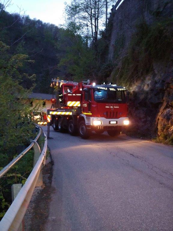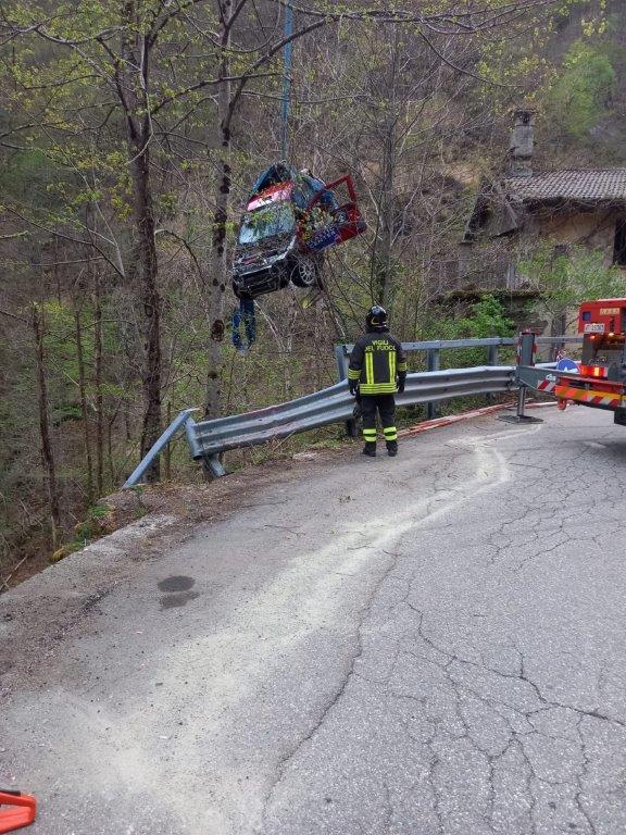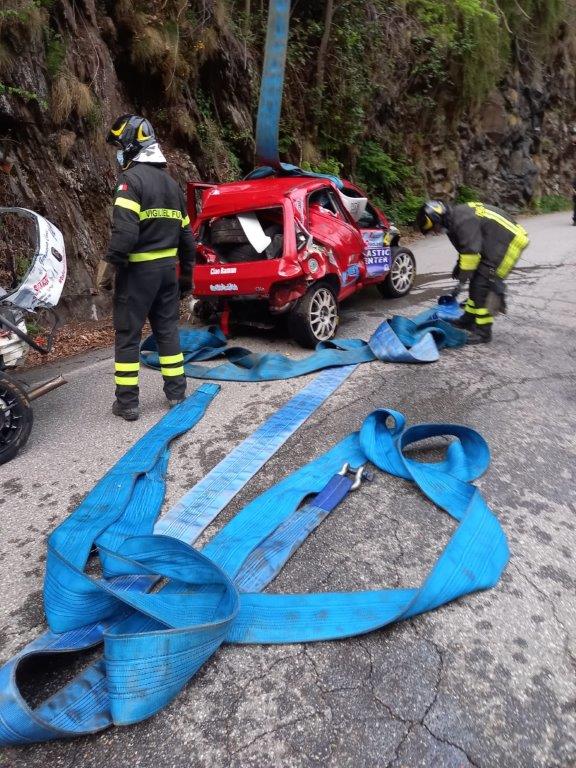 VAL CANNOBINA - 26-04-2021 - Intervento dei Vigili del Fuoco in valle Cannobina per il recupero delle due autovetture uscite fuori strada durante una prova del rally delle Valli Ossolane.
