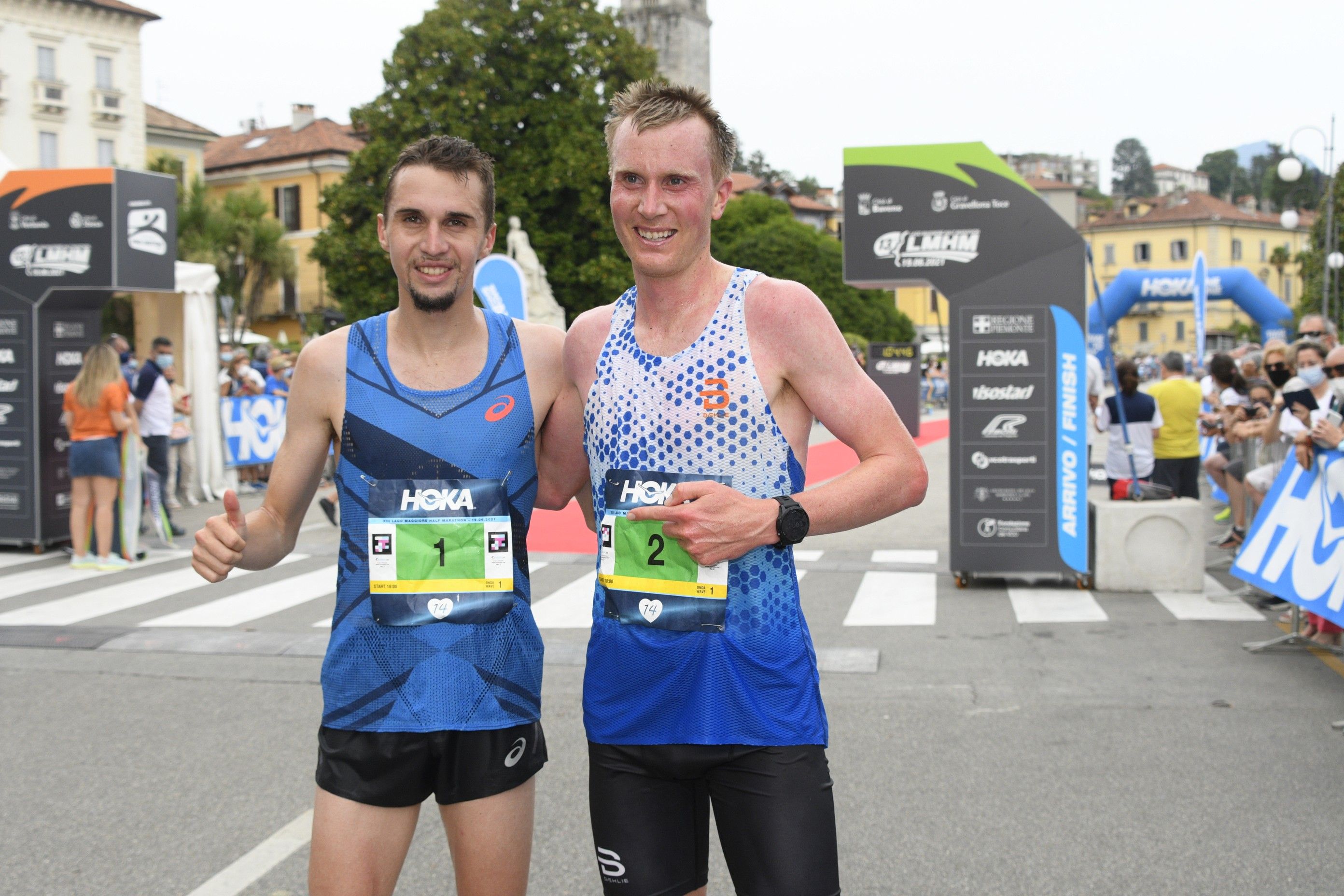 VERBANIA - 20-06-2021 -- È vissuta su testa a testa svizzero-norvegese, risolto a favore del rossocrociato Julien Wanders, l’edizoine 2021 della Lago Maggiore Half Marathon. Annullata nel 2020, spostata di calendario -e d’orario-, la “mezza” sul percorso più panoramico d’Italia s’è chiusa all’ora di cena a Pallanza. Il primo a tagliare il traguardo, con il tempo 1h02’42”, è stata Wanders, che ha lasciato indietro, con un distacco di 18”, il norvegese Sondre Moen. Terzo il keniano Matthew Kibarus con il crono di 1h07’52”. Il primo italiano al traguardo è stato il torinese Alessio D’Alessandro, che s’è così aggiudicato il trofeo alla memoria di Aldo Sassi e Paola Pizzi. Va invece ad Alessandro Lacqua della società Sport Ptoject il trofeo che porta il nome del compianto Davide Bolognini che, sostenuto dall’Atletica Avis Ossolana, era destinato al primo podista del Vco.