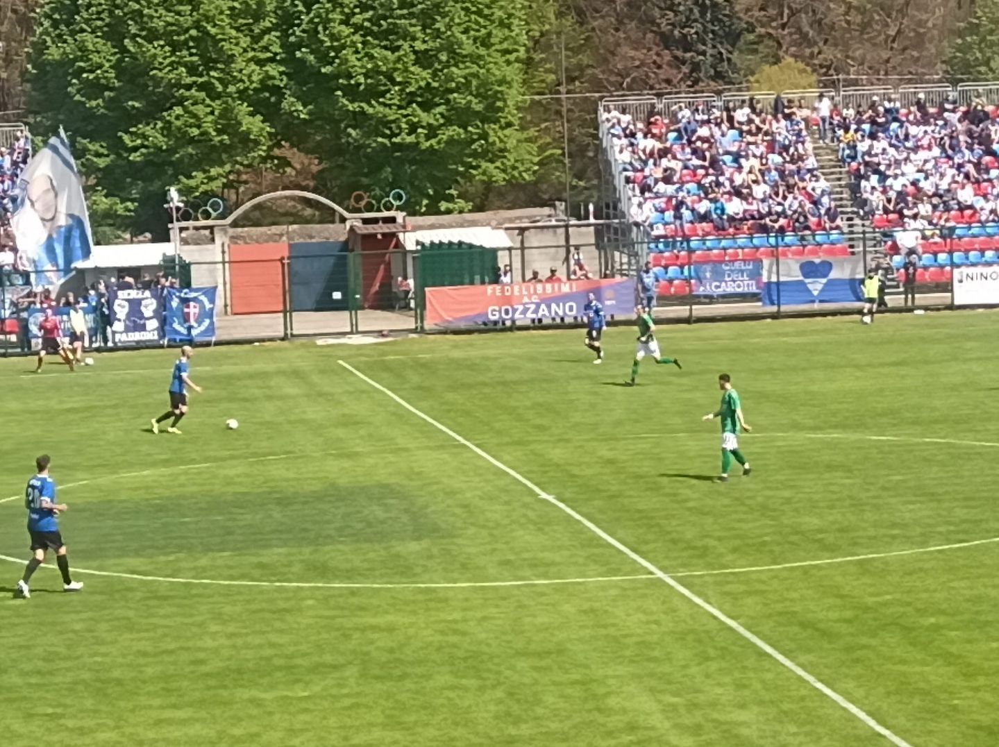 GOZZANO – 01-05-2022 -- Arriva sul Cusio la promozione matematica del Novara Fc in Serie C. Pur non riuscendo a conquistare i tre punti che sarebbero serviti allo scopo senza stare a guardare il risultato della Sanremese, gli azzurri hanno approfittato della rete di Parlanti del Sestri Levante al terzo minuto di recupero che ha costretto al pari i rivali del Novara nella corsa alla categoria superiore. Lo 0-0 maturato in un D’Albertas quasi completamente esaurito ed invaso da striscioni e bandiere degli ultras novaresi, non ha dunque impedito la festa finale. Veniamo alla cronaca. Si vede per primo il Gozzano, all’8° Bane ci prova di testa ma la difesa libera. Due minuti dopo una punizione di Cozzari termina a lato di parecchio. All’11° Pagliai serve Vuthaj in area cusiana, Vagge si salva in corner. Al 15° l’angolo è per il Gozzano ma Cozzari di testa mette a lato. Al 20° è Costanzo a mettere in mezzo e la difesa del Novara a salvarsi in corner. Al 28° Cozzari serve Montesano che si vede ribattere la conclusione. Il Novara si fa vedere a sua volta in varie occasioni in area rossoblù, ma senza costruire nulla di pericoloso. Al 30° la palla gol del Gozzano: Castelletto smarca Pennati a due metri dalla linea di porta con Desjardins battuto, ma l’attaccante controlla male e spara alto sulla traversa. Due minuti e Gonzalez al volo appena fuori area calcia verso la porta, ne esce solo un corner. Un altro minuto ed è Vuthaj a mettere fuori di testa da due passi. La vera occasione per il Novara è al 35°: Vaccari lancia in velocità Gonzalez che entra in area e batte quasi a colpo sicuro, ma Vagge si supera e ci arriva di piede. Si passa al secondo tempo. Al 51° Vuthaj calcia dal limite e colpisce l’incrocio dei pali. Al 54° Castelletto di testa, para facilmente Desjardins che si ripete due minuti dopo su una conclusione di Costanzo. Non succede più nulla di significativo fino al 76° quando il Novara inizia a premere con decisione stimolato dalle notizie che danno la Sanremese in vantaggio 2-1 col Sestri Levante. Calcia ancora Vuthaj da un metro ma Montesano salva sulla linea spedendo in corner. Ci prova Tentoni al 79°, servito da Laaribi, ma il tiro è debole. L’ultima occasione all’inizio del recupero è del Gozzano: Cozzari viene atterrato al limite da Benassi, punizione di Montesano che impegna Desjardins costringendolo alla deviazione in angolo. Al triplice fischio dell’arbitro, signor Rispoli di Locri che ha molto ben diretto, le squadre rientrano negli spogliatoi, ma nemmeno due minuti dopo arriva la notizia delle rete di Parlanti a Sanremo e tutto il Novara si riversa nuovamente in campo e inizia la festa delle centinaia di sostenitori che gremivano le gradinate. (FAB)
